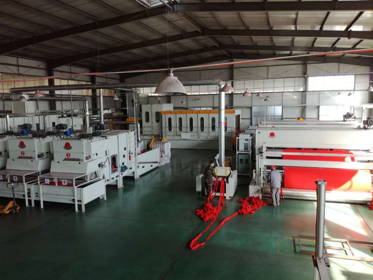 公司總投資1億余元,首期工程已完成投資3000萬元,F(xiàn)已建設(shè)標(biāo)準(zhǔn)廠房15000余平方米、引進(jìn)多條無紡布生產(chǎn)線。其中,針刺無紡線4條、起絨機(jī)兩臺、電腦提花機(jī)1臺、條紋機(jī)1臺、地毯整理烘干定型線兩套。